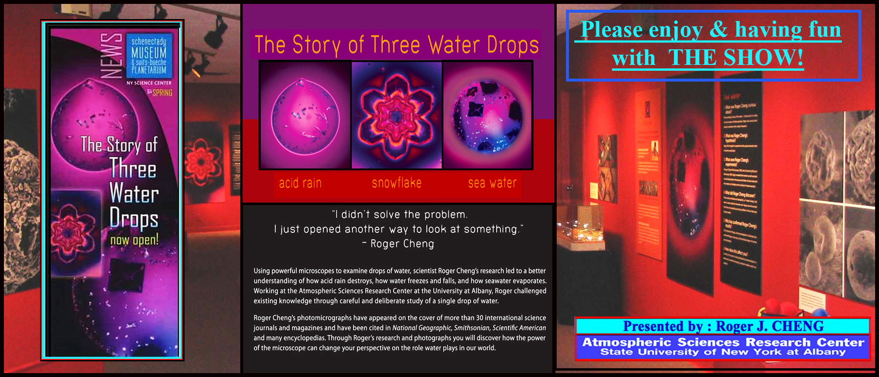 EXHIBIT-The STORY of THREE WATER DROPS · NEW YORK SCIENCE CENTER · PRESENTED by: ROGER J CHENG ASRC UNIVERSITY at ALBANY SUNY ...